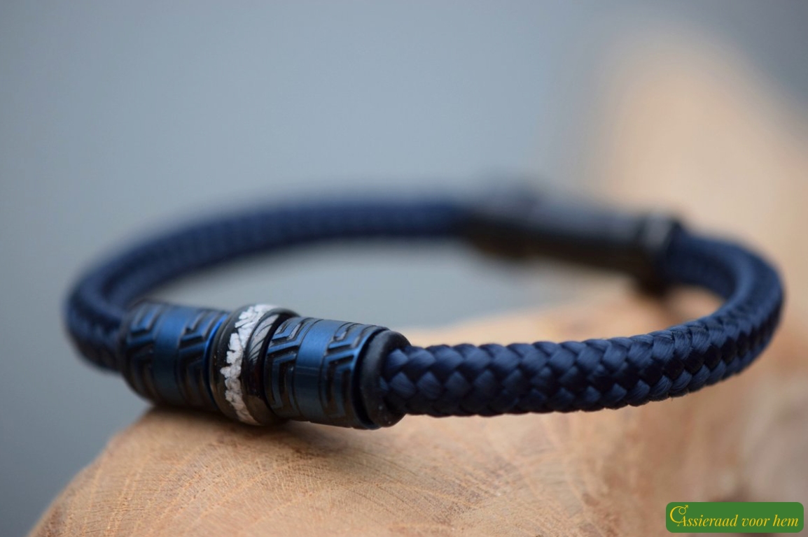 De Sail-Rope armband is een sterke blauwe 6mm band met een zeer flexibel en aangenaam draagcomfort. Sail Rope is een zeer sterk polyester gevlochten materiaal, soepel in gebruik en heeft een gladde afwerking. Sail Rope wordt door deze sterke eigenschappen ook in de zeilsport gebruikt.
