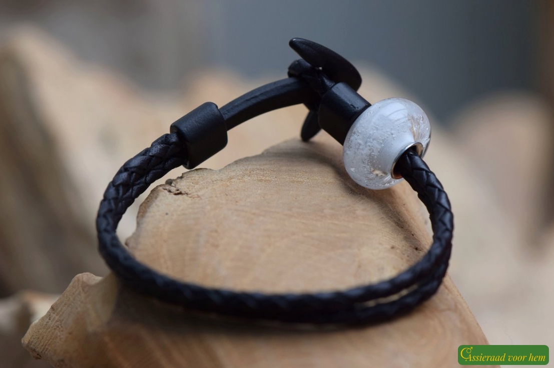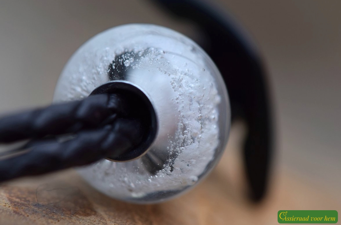 Let op, dit sieraad kan u thuis niet zelf vullen maar wordt voor u handgemaakt door Jet waarbij het crematie-as vast in een transparant glasbedel gesmolten/geblazen wordt! In de crematie-as bedel op de foto is het crematie-as zichtbaar in de glasbedel. Natuurlijk kan u ook voor een andere kleur glasbedel kiezen als u het crematie-as liever niet zichtbaar wil hebben. Dit mag u dan direct na uw bestelling doorgeven. De crematie-as glas bedel ligt vast op een dubbele lederen zwarte band met een rvs zwarte anker sluiting en schuiver. De armband wordt voor u op maat gemaakt. Getoonde foto’s laten een voorbeeld zien van hoe het herinneringssieraad er uit komt te zien. Houdt er rekening mee dat uw crematie-as bedel niet exact hetzelfde kan worden omdat uw crematie-as bedel handwerk is en crematie-as verschillende wit en grijs tinten kan hebben. Nàontvangst van het crematie as wordt uw gedenksieraad én het resterende as bij 8 werkdagen naar u terug gestuurd via pakketpost of brievenbus pakket post van DHL. Mochten er vooraf aan uw bestelling vragen zijn dan beantwoord ik ze graag voor u. Crematie as in glas.nl is een geregistreerd en gewaarborgd merk wat u de garantie geeft voor een uniek en kwalitatief handgemaakt product zonder replica’s of massaproduktie